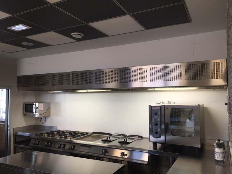 Otro de los servicios que ponemos a disposición de los clientes es la fabricación a medida del mobiliario de la cocina industrial y del extractor de humo fabricado en acero inoxidable. De esta manera, se consigue aprovechar al máximo los espacios de los que se dispone.
